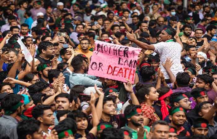 बांग्लादेश में सरकारी नौकरियों में आरक्षण खत्म करने की मांग को लेकर छात्र प्रदर्शन कर रहे हैं। पिछले एक महीने से उनका विरोध प्रदर्शन चल रहा है। इसे लेकर प्रधानमंत्री शेख हसीना के इस्तीफे की मांग पर प्रदर्शनकारी अड़े हुए हैं। प्रदर्शनकारी छात्रों की रविवार को पुलिस और सत्तारूढ़ पार्टी के नेताओं से भिड़त हो गई। इसके बाद मामला काफी बढ़ गया।