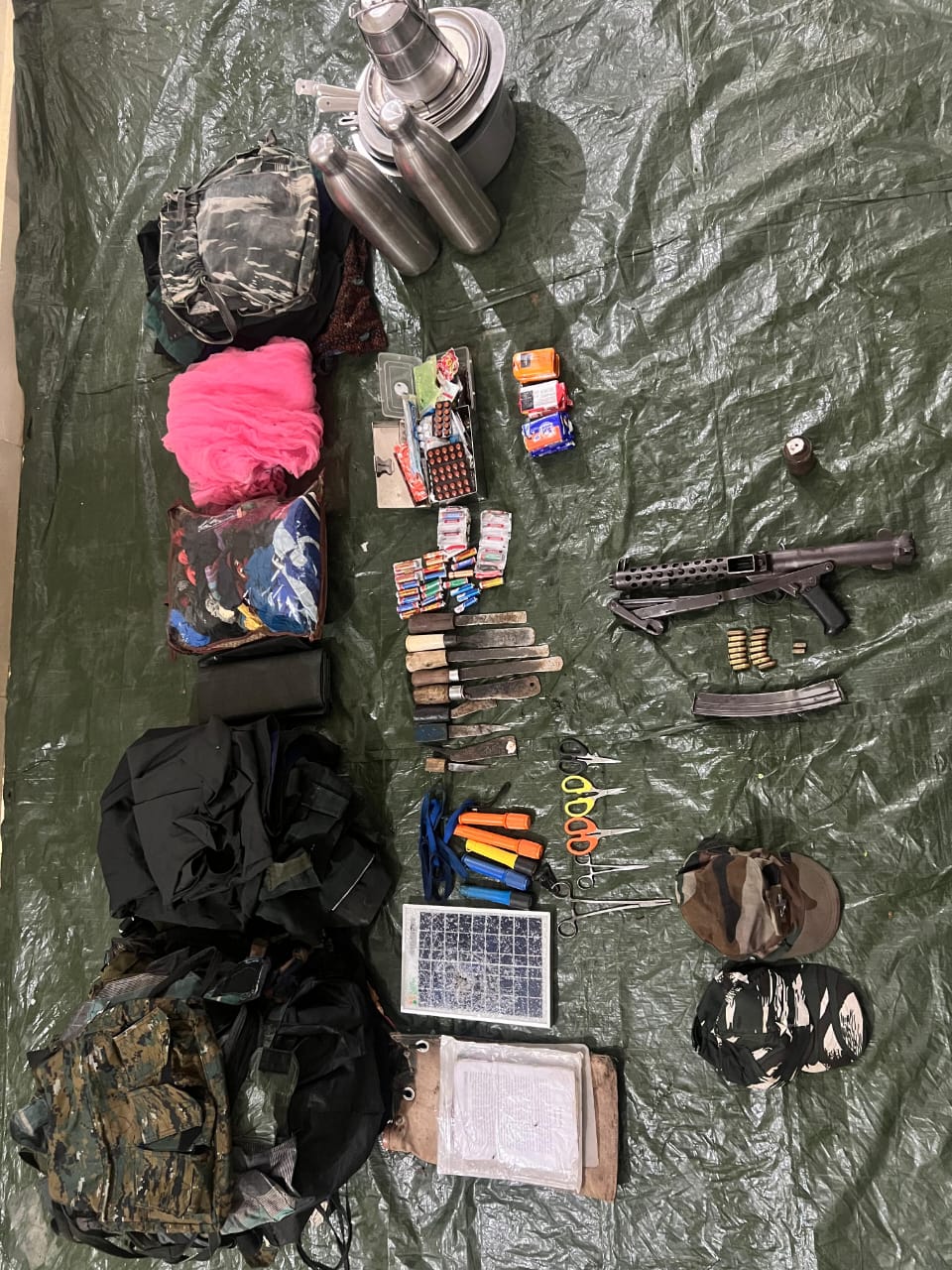 मौके से 01 पुरूष माओवादी का शव एवं 01 नग कार्बाइन, ग्रेनेड, माओवादी वर्दी, पिटठू एवं माओवादी साहित्य एवं अन्य माओवादी सामग्री बरामद किया गया है। छत्तीसगढ़ एवं तेलंगाना के सीमावर्ती क्षेत्र में जिला बीजापुर – जिला मुडगू के सरहदी ईलाका में तेलंगाना ग्रेहाउण्डस बल एवं बीजापुर डीआरजी बल द्वारा नक्सल विरोधी अभियान दिनांक 18.07.2024 से संचालित किया गया था ।