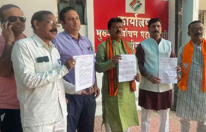 KHABARWAAD RAIPUR. प्रधानमंत्री नरेंद्र मोदी पर की गई अभद्र और विवादित टिप्पणी को लेकर भाजपा संगठन के पदाधिकारी मुख्य निर्वाचन पदाधिकारी कार्यालय पहुंचे। जहां भाजपा ने निर्वाचन आयोग से नेता प्रतिपक्ष डॉ. चरणदास महंत के खिलाफ शिकायत की और मामले में तत्काल कार्रवाई की मांग की।