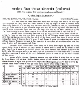 प्रधानमंत्री आवास योजना ग्रामीण अंतर्गत संविदा नियुक्ति हेतु उक्त पदों के लिए न्यूनतम शैक्षणिक योग्यता के अर्हताधारी एवं इच्छुक अभ्यर्थियों से निर्धारित प्रारूप में आवेदन पत्र बंद लिफाफा में केवल स्पीड पोस्ट एवं रजिस्टर्ड डाक के माध्यम से मुख्य कार्यपालन अधिकारी जिला पंचायत कोण्डागांव जिला कोण्डागांव (छ.ग.) के पते पर निर्धारित तिथि 10 अक्टूबर 2024, समय सांय 5.30 बजे तक आमंत्रित किया गया है।