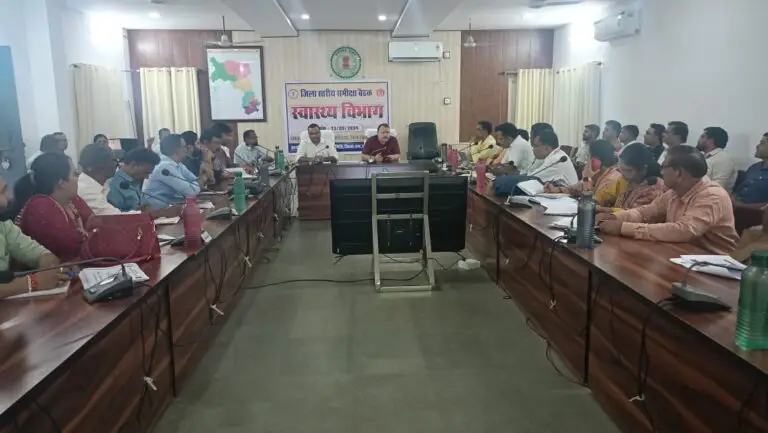 Chhattigarh Health Department : कलेक्टर डी. राहुल वेंकट के निर्देशानुसार 13 सितंबर 2024 को कलेक्ट्रेट सभाकक्ष में स्वास्थ्य विभाग की जिला स्तरीय समीक्षा बैठक आयोजित की गई। इस बैठक की अध्यक्षता मुख्य चिकित्सा एवं स्वास्थ्य अधिकारी (सीएमएचओ) डॉ अविनाश खरे और जिला कार्यक्रम प्रबंधक (डीपीएम) डॉ पुष्पेंद्र सोनी ने की।