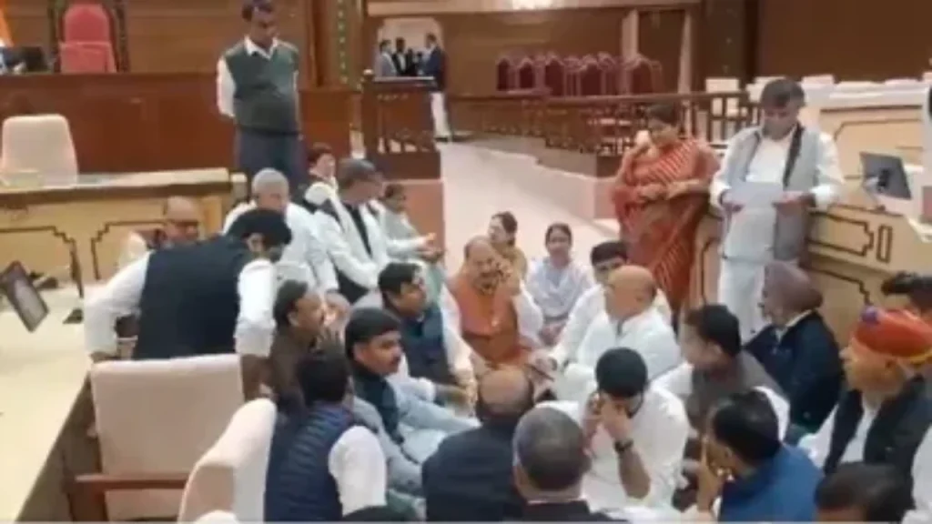 जयपुर: राजस्थान विधानसभा में शुक्रवार को कथित अशोभनीय व निंदनीय आचरण करने के लिए कांग्रेस के प्रदेश अध्यक्ष गोविंद सिंह डोटासरा सहित पार्टी के 6 विधायकों को बजट सत्र की शेष अवधि के लिए निलंबित करने का प्रस्ताव पारित किया गया। विधानसभा अध्यक्ष वासुदेव देवनानी ने सरकारी मुख्य सचेतक जोगेश्वर गर्ग द्वारा रखे गए इस आशय के प्रस्ताव के पारित होने की घोषणा की। इसके बाद सदन की कार्यवाही 24 फरवरी तक के लिए स्थगित कर दी गई।