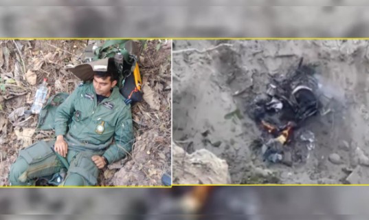 विमान के गिरने से पहले पायलट ने पैराशूट के जरिए छलांग लगा दी, जिससे पायलट की जान बच गई। फाइटर जेट पूरी तरह से जलकर क्षतिग्रस्त हो गया है और विमान के टुकड़े आसपास बिखरे हुए हैं।