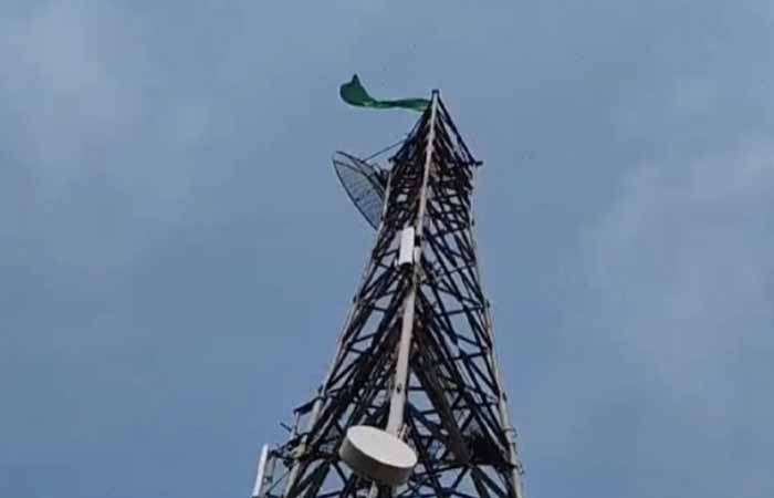 Islamic flag hoisted on BSNL tower: मध्यप्रदेश के रायसेन जिले में हरे रंग का इस्लामिक फहराने का मामला सामने आया है। जिले के बेगमगंज के सबसे ऊंचा बीएसएनल पोस्ट टावर पर कुछ शरारती तत्वों ने रात को हरे रंग का इस्लामिक झंडा फहराकर दिया, जिससे लोगों में नाराजगी है। लोगों ने इसकी शिकायत पुलिस से की है। टावर के पास सुबह लोगों की भीड़ लग गई।