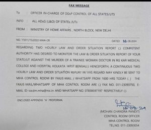 Kolkata Rape & Murder Case : कोलकाता के आरजी कर मेडिकल कॉलेज और अस्पताल की जूनियर डॉक्टर की रेप और हत्या की घटना मामले में केंद्रीय गृह मंत्रालय (MHA) ने अधिसूचना जारी की है। गृह मंत्रालय ने सभी राज्यों और केंद्र शासित प्रदेशों को कानून और व्यवस्था की स्थिति की रिपोर्ट हर दो घंटे में ईमेल, फैक्स या व्हाट्सएप के जरिए केंद्र को भेजने का आदेश दिया है।