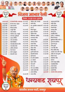 बता दे की बृजमोहन अग्रवाल अब तक के अजेय विजेता रहे हैं और इसके पहले उन्होंने रायपुर दक्षिण विधानसभा से 8 बार लगातार विधायक भी रह चुके हैं, साथ ही हर बार उन्होंने अपने विजय उपरांत आभार रैली का आयोजन किया है। ताकि जनता के आशीर्वाद को वे अपना आभार दे सके।।