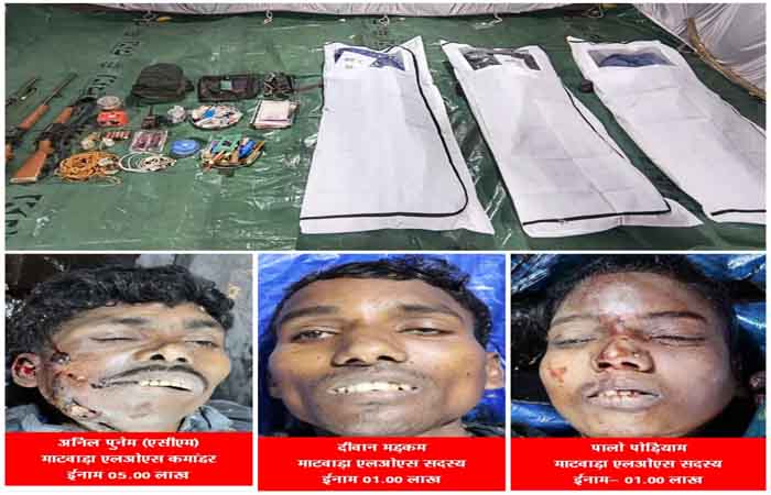 Bijapur Naxal Encounter Update: पुलिस से मिली जानकारी के अनुसार, मारे गए नक्सलियों में 5 लाख रुपये का इनामी माटवाड़ा एलओएस कमांडर अनिल पुनेम, 1 लाख रुपये का इनामी माटवाड़ा एलओएस सदस्य पालो पोड़ियाम और 1 लाख रुपये का इनामी दीवान मड़कम शामिल हैं। यह सभी लंबे समय से क्षेत्र में नक्सली गतिविधियों में सक्रिय थे और कई बड़ी घटनाओं में शामिल रहे हैं।
